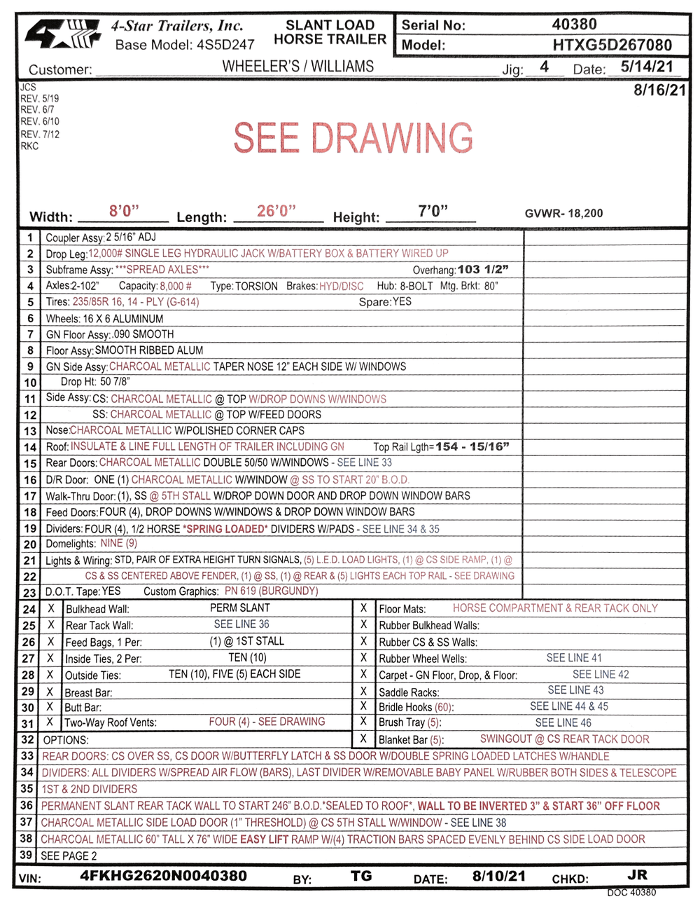 - 8’ wide x 26’ long x 7’ tall