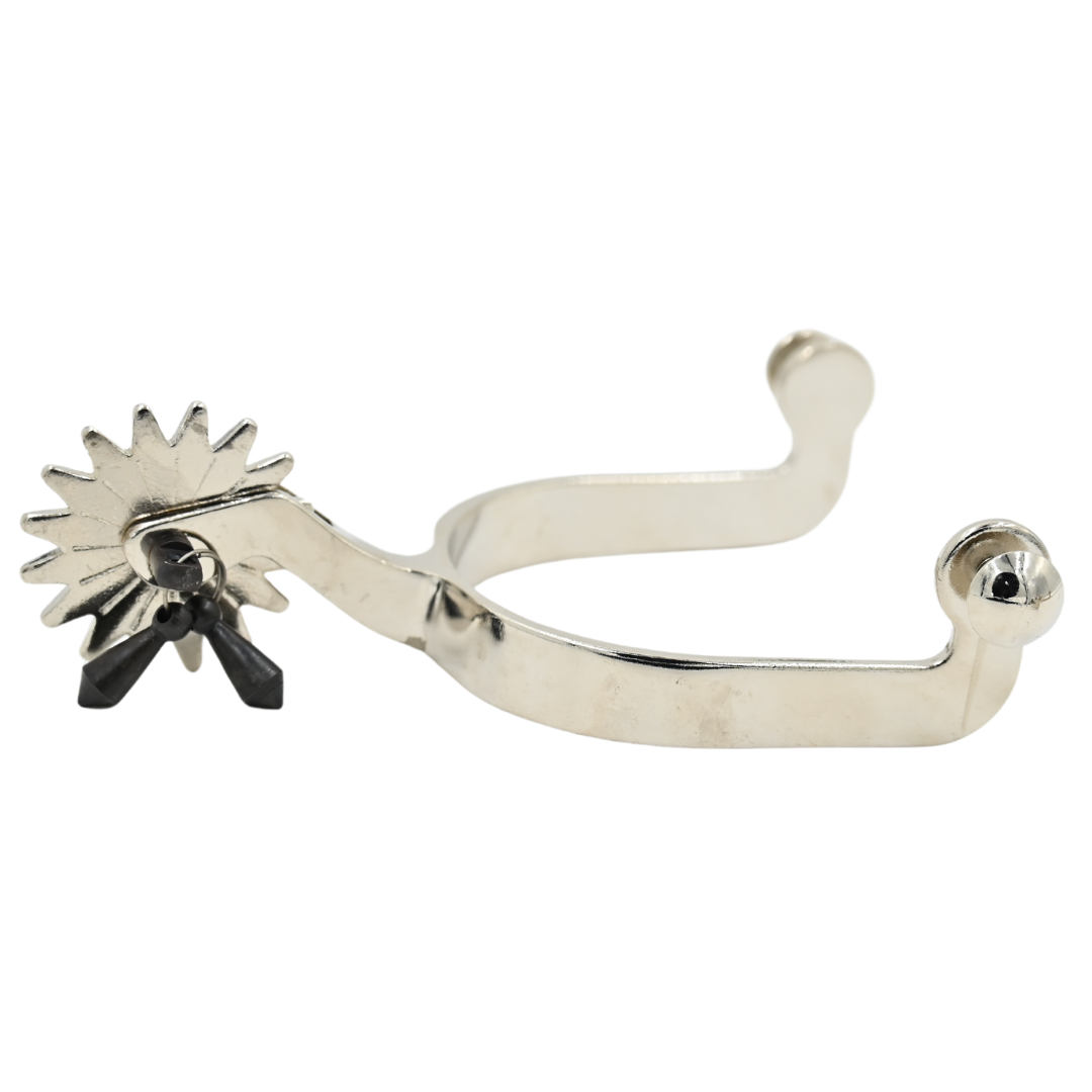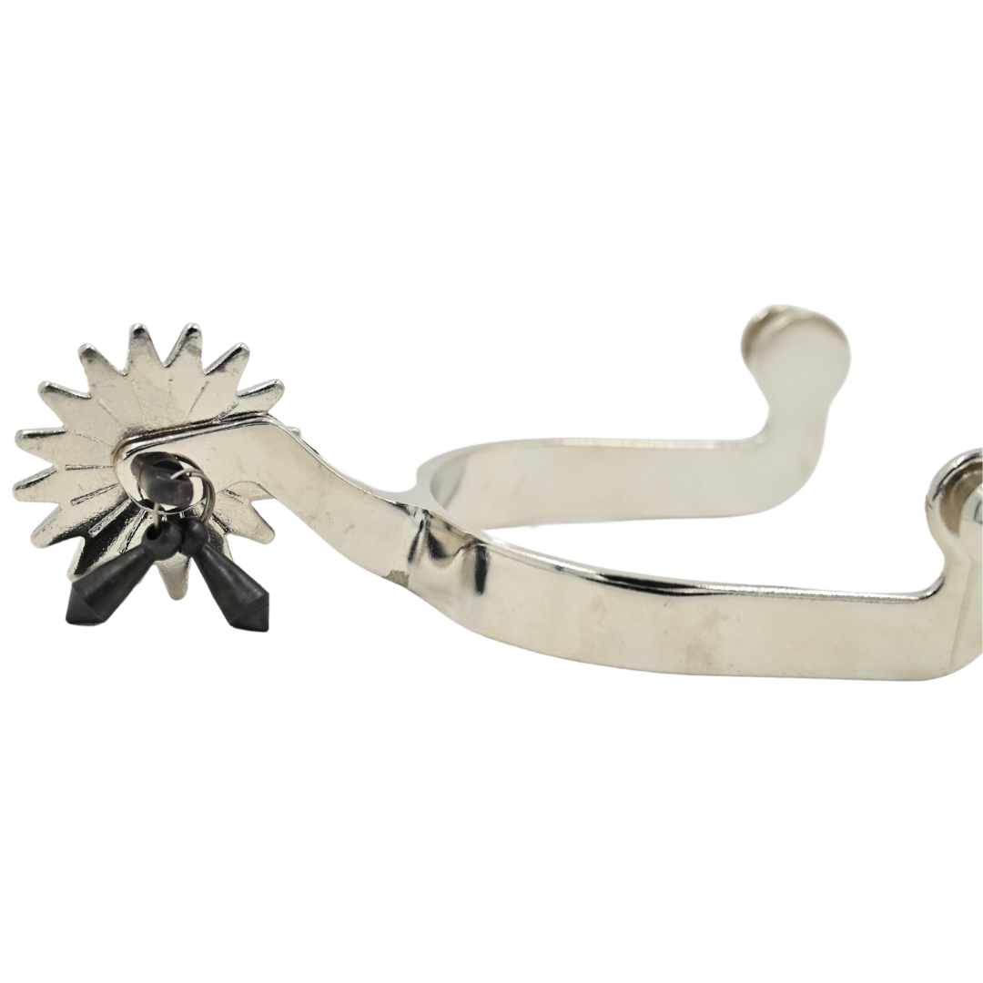 These beautiful Tough 1 narrow band spurs are made from stainless steel, a durable and corrosion-resistant metal, which ensures their longevity and reliability. These spurs are also available in a black steel or polished silver finish. The 16-point rowel features fun jingle bobs for a great western look.