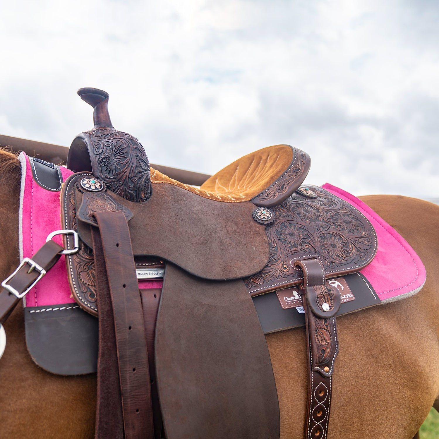 The Classic Equine Zone Series Microsuede Felt Saddle Pad is designed to provide maximum comfort, durability, and performance. Built for both comfort and function, this saddle pad helps to protect your horse's back while offering an exceptional fit under your saddle. The 28" x 30" size makes it perfect for smaller western saddles, ensuring an even distribution of pressure and a stable, secure fit.