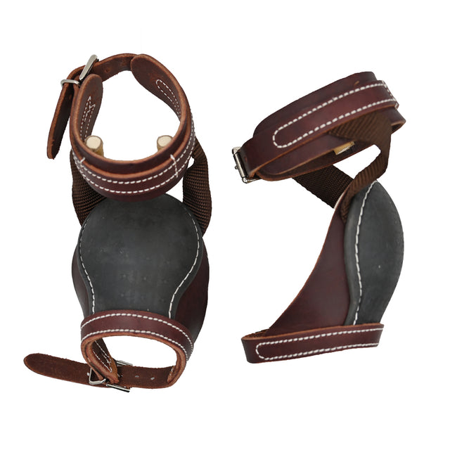 Fast Back Ropes Skid Boots with BuckleUltimate protection for hard stopping heel and calf horses! Hand made for Fast Back. Boot made of the finest quality latigo leather. Shock absorbing liners and heel caps are composed of highly flexible and durable rubber to provide the maximum protection for your horse. Made in Texas.