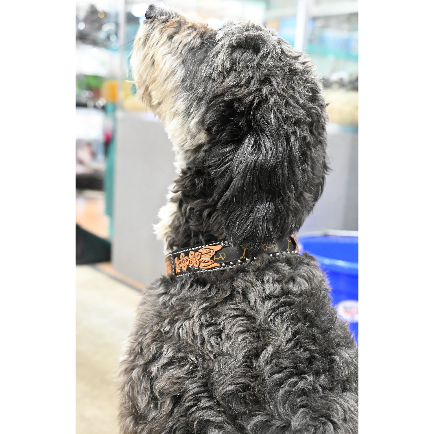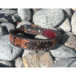 The Rafter T Ranch Co. Dog Collar with Designer Inspired Tan Printed Arrows is a durable and stylish accessory designed to offer both comfort and rugged Western charm for your canine companion. Made from high-quality, leather inlaid with a tan and brown arrow print, this collar features classic floral detailing, adding a refined touch to its sturdy construction. Perfect for everyday wear or special occasions, this collar is built to last and withstand outdoor adventures.