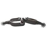 These Classic Equine Spurs have a 1” classic roper style drop shank to avoid accidental contact with the horse. Also featuring a 1” band that is weighted to stay down on the heel. The beautiful rasp embossed design adds a textured and elegant element to the overall look, setting them apart from traditional spur designs.