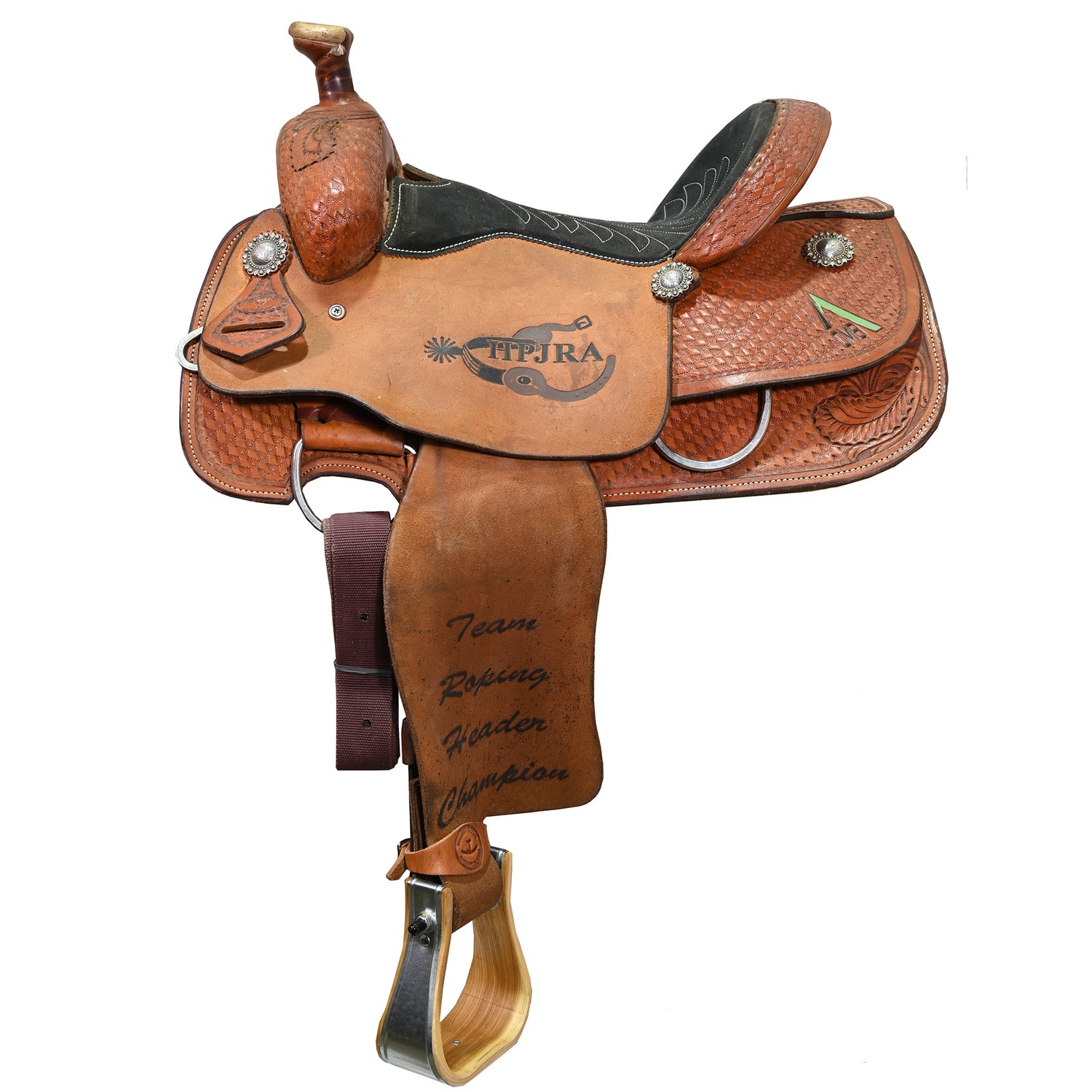 | Trophy, Brands, or Lettering Present: | HPJRA Team Roping Header Champion, 13-15, Logos on skirt |