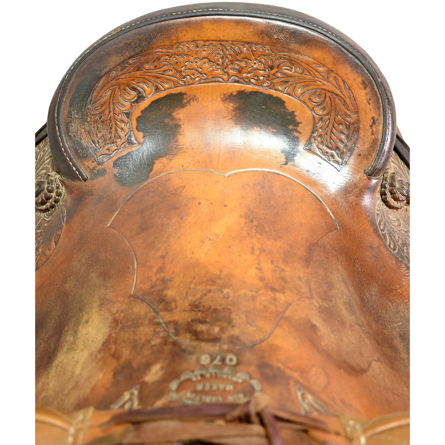 Used 15.5" Ron Carlton Ranch Saddle is currently out of stock. You may still purchase this item, and we will contact you after your order is placed to provide an estimated shipping date.